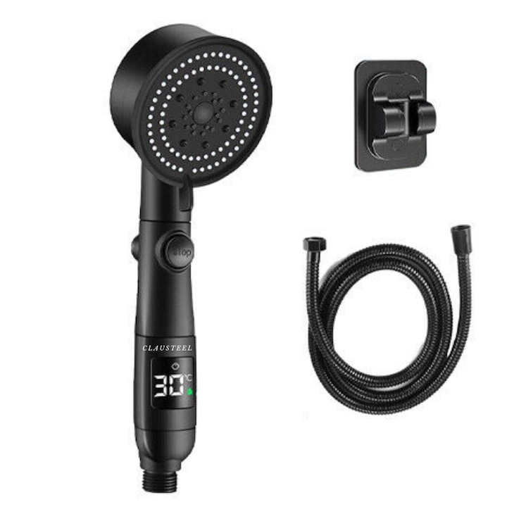Set de Dus inteligent cu afisaj digital al temperaturii, Cap de dus de inalta presiune cu Suport si Furtun incluse si 5 moduri de functionare, negru