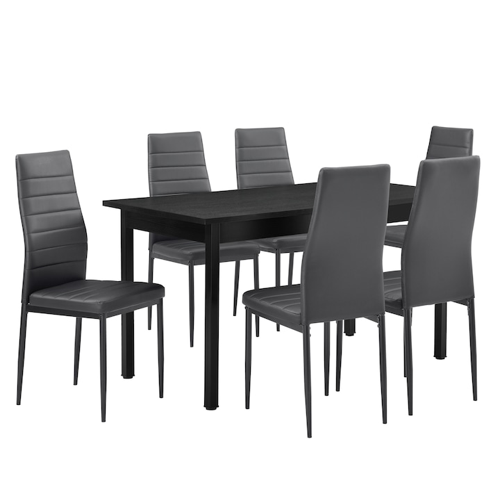 Scaun capitonat imitatie piele – set 6 scaune – negru