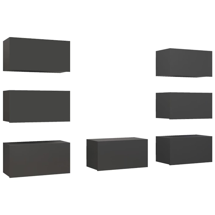 Acest set de dulapuri TV suspendate este menit sa fie un punct central al sufrageriei dvs., avand un design la moda, dar si un caracter practic.