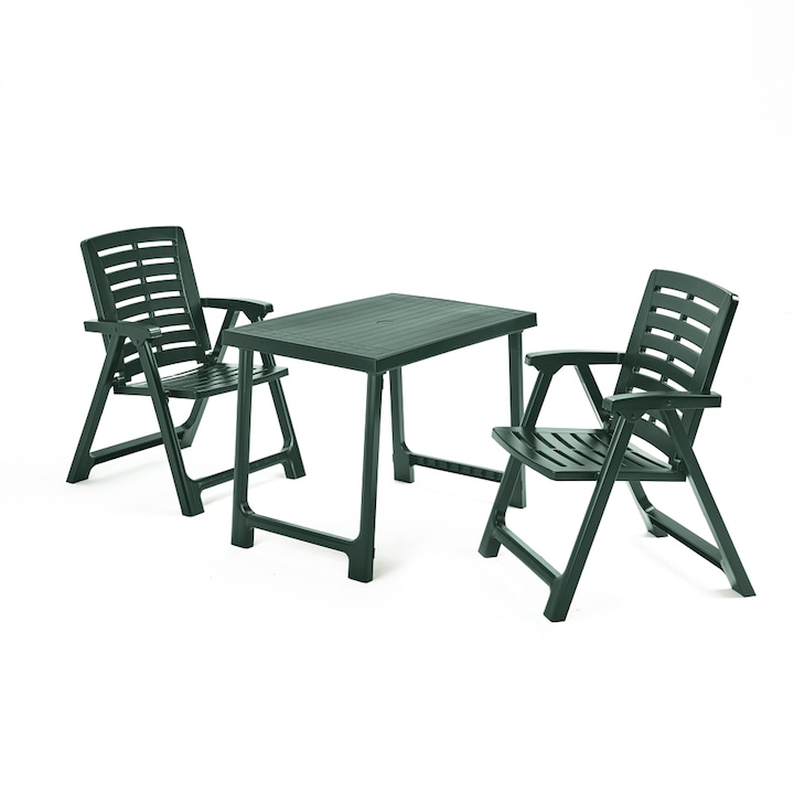 Set gradina/terasa masa 81x56x63 cm cu 2 scaune 56x59x82 cm, PIK NIK, Progarden, verde, polipropilena