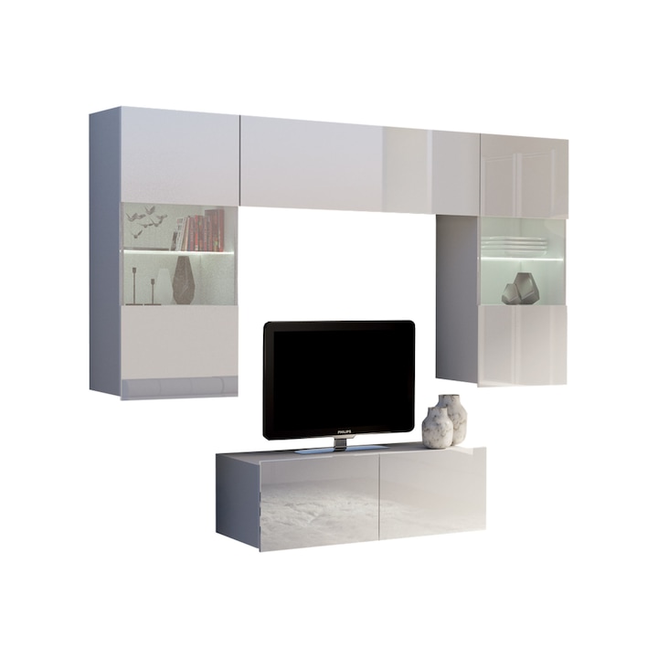 - comoda tv – picioare argintii 5 cm, element universal, poate fi asezat pe podea sau suspendat pe perete,