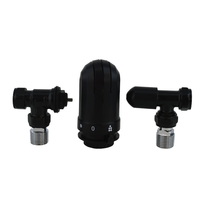 Set robineti radiator coltari 1/2 cu cap termostatic CONRAD Black+Black
