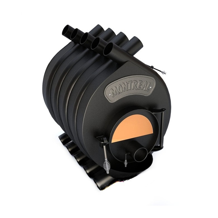• Soba „MONTREAL” are un design suprinzator si seamana cu un motor. Este in mod special proiectata astfel, pentru a trage aerul de jos prin ventilaţiile de sus, incalzindu-l pe parcursul drumului. In acelasi timp, designul unic permite arderea intensa si retinerea indelungata a caldurii, folosind la maximum energia focului de lemne.