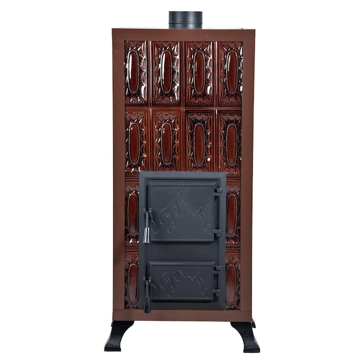 Home Sanitare Sisteme incalzire Cazane combustibil solid, sobe si semineuri Soba de teracota Premium, 4R cu rama, Maro, Cu usa din fonta