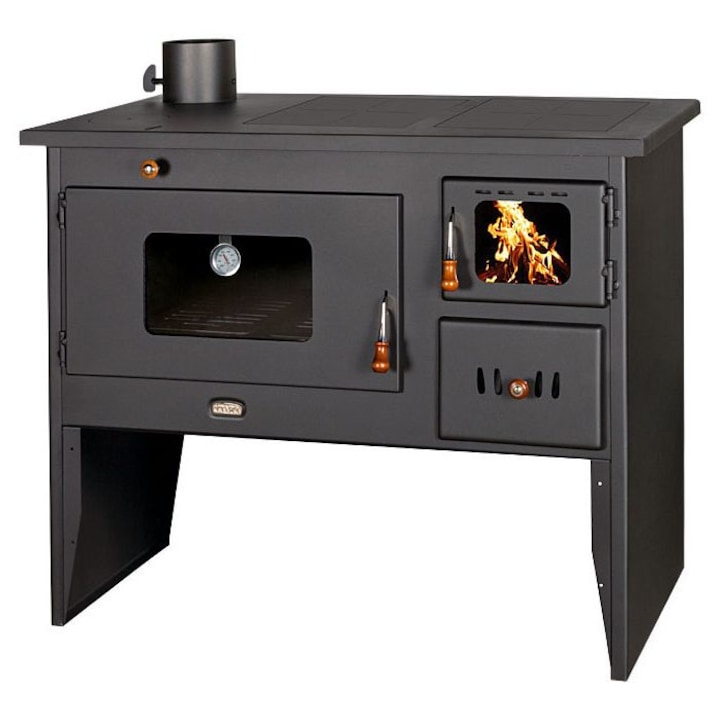 Doua plite din otel deasupra focarului. Cuptor din otel cu dimensiunea 505x520x222, termometru pentru indicarea temperaturii din cuptor si suport detasabil pentru tava. Decoratiunile frontale, laterale si usa sunt optionale.