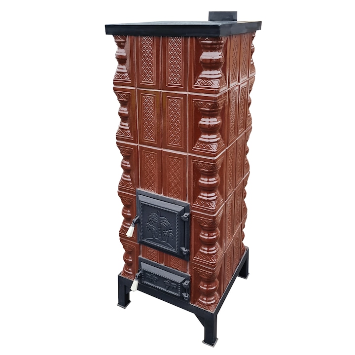 Home Sanitare Sisteme incalzire Cazane combustibil solid, sobe si semineuri Soba teracota, Gospodarul, turn 5 randuri + plita, maro, 140 cm x 46 cm x 46 cm