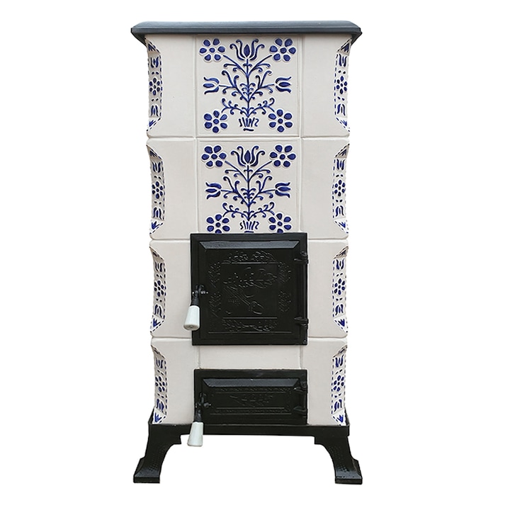 Soba teracota, Medias, portabila, model Sieben2, 6 kw, 44x44x114 cm, alb/albastru