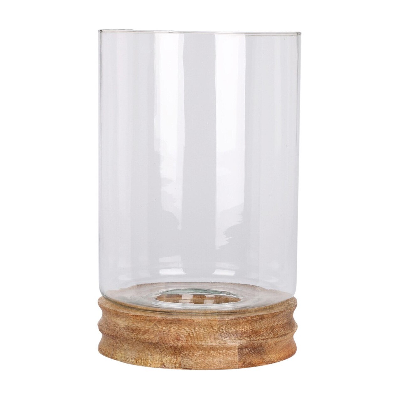 Suport lumanare, cadru sticla, baza lemn, 33 cm