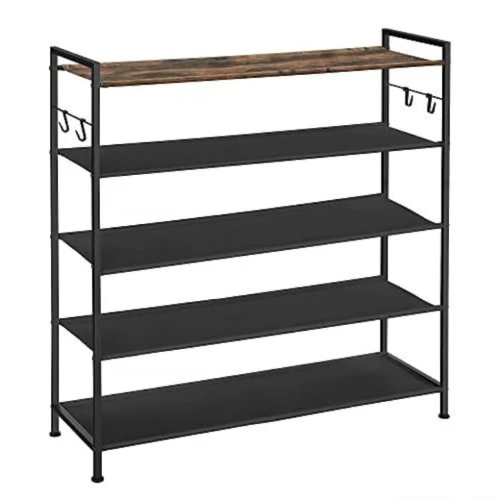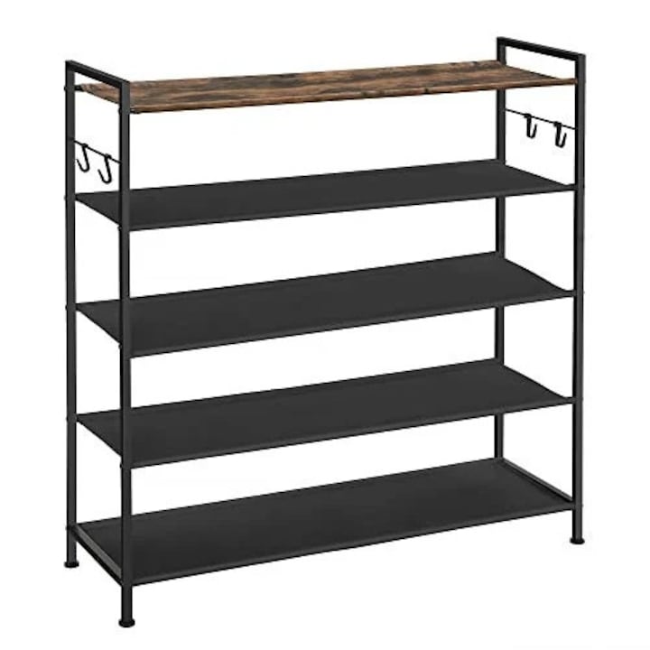 Suport pantofi cu 5 rafturi, metal / textil, negru, Songmics