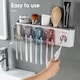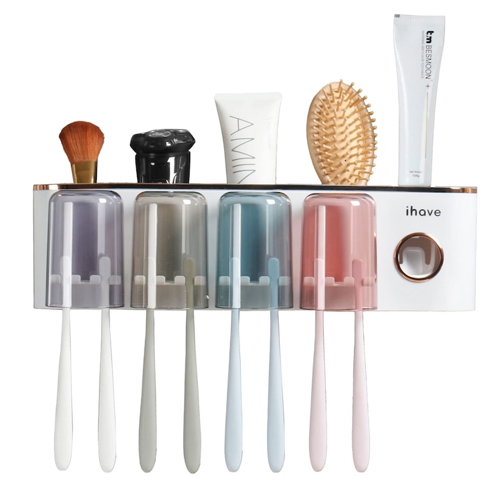 - Multifunctional: Acest organizator de baie cu suport periuta de dinti vine cu un distribuitor de pasta de dinti, astfel incat sa puteti stoarce cu usurinta pasta de dinti fara a o irosi. Suporturile pentru periuta de dinti cu fixare pe perete cu cupe inversate sunt rezistente la praf si la apa.