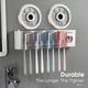 - Durabil: Suporturile pentru periuta de dinti folosesc o banda adeziva care nu marcheaza, cu un efect excelent de calafat. Fie ca este metal, lemn, oglinda, tigla ceramica sau marmura, poate fi lipit ferm si durabil intr-un mediu umed. Cu cat suportul este mai lung, cu atat lipiciitatea este mai stransa.