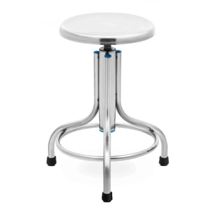 Scaun de laborator reglabil – MP10030826 Scaunul de la Steinberg Systems va functiona bine in laboratoare, ateliere sau cabinete medicale, precum si acasa. Datorita constructiei sale din otel inoxidabil, este robust si durabil. Este usor de curatat si dezinfectat fara teama de a-l deteriora. Scaunul este reglabil in inaltimea scaunului de la 45 la 60 cm. Inelul de intarire stabilizeaza scaunul, iar capacele de plastic de pe picioare impiedica zgarierea podelei. Specificatie Articol Scaun de laborator Nr. ref. MP10030826 Stare articol Nou Material de constructie Otel inoxidabil Reglabil pe inaltime Da (45 – 60 cm) Diametru scaun 29 cm Sarcina maxima 150 kg Roti Nu Dimensiuni (Lxlxh) 28 x 28 x 60 cm Greutate 2,8 kg Transport dimensiuni (Lxlxh) 41 x 40 x 50 cm Greutate transport 3,8 kg Continut: Scaun din otel inoxidabil Manual de instructiuni