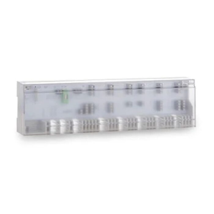 Unitate de comanda cu fir pentru incalzire. Unitatea de comanda trimite si primeste semnale la si de la termostate si senzori pentru a actiona actuatoarele si alte echipamente de incalzire. Se pot inter-conecta pana la 10 unitati de comanda intr-un singur sistem. Caracteristici: Numar maxim zone/termostate: 10 Numar maxim actuatoare: 18 Numar maxim actuatoare ce pot fi controlate de catre 1 termostat: 5 Alimentare: 230V, 50Hz Clasa protectie: IP20 Dimensiuni: 89 x 359 x 49mm (hxLxa) Instalare directa sau cu sina montaj DIN 35 x 7.5mm Alimenteaza cu energie electrica pompa, actuatoarele si termostatele de 230V Releu pornire/oprire pompa sau cazan – delay 2 min; releu fara potential protectie pompa Comutare incalzire – racire Releu conectare senzor umiditate/limitator temperatura Releu conectare timer/programator extern Protectie actuator: la fiecare 14 zile de la ultima actionare timp de 10 min Protectie pompa: la fiecare 14 zile de la ultima actionare timp de 1 min.