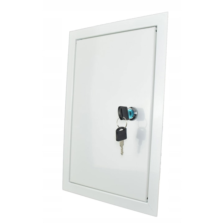 Usa de inspectie metalica alba cu incuietoare, 30×30 cm