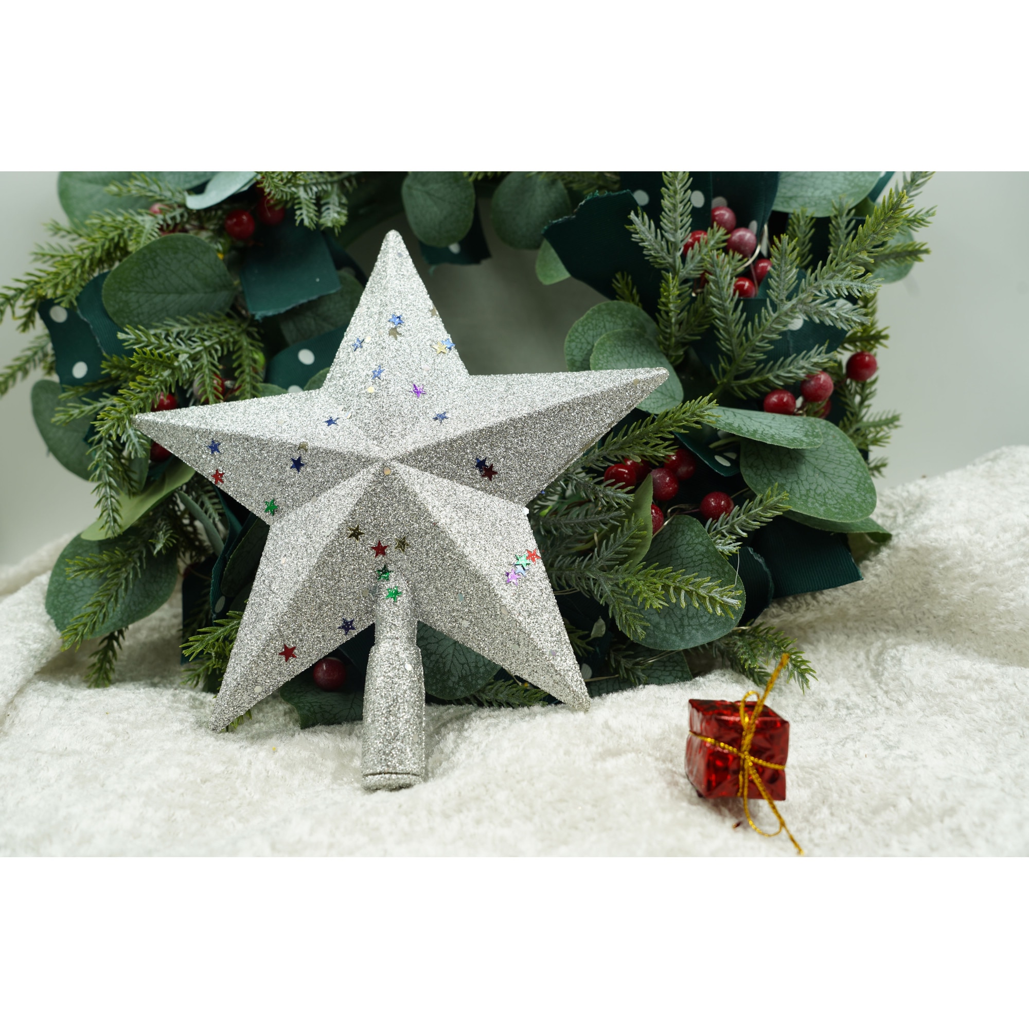 Varful de brad este de culoare Argintiu, avand un aspect frumos si creativ, cu design cu paiete .