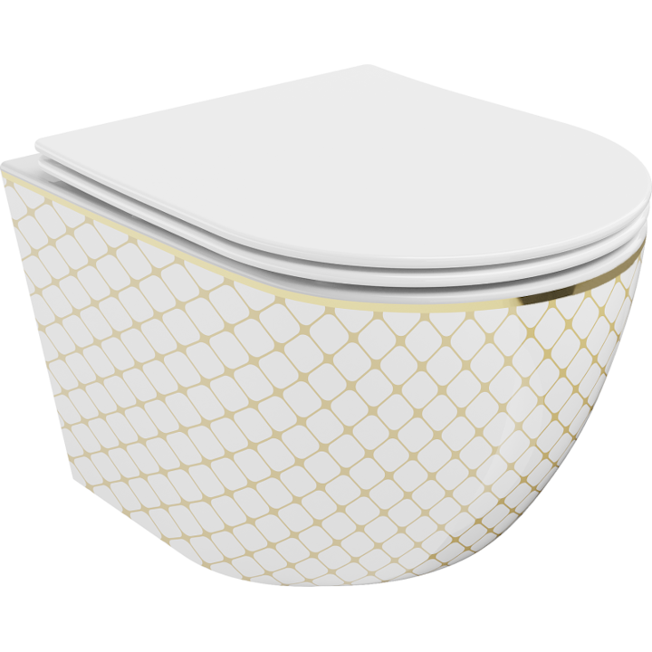 Vas de toaleta suspendat, Mexen, 16080, Ceramica, Alb/Auriu, 48x36x35.5 cm