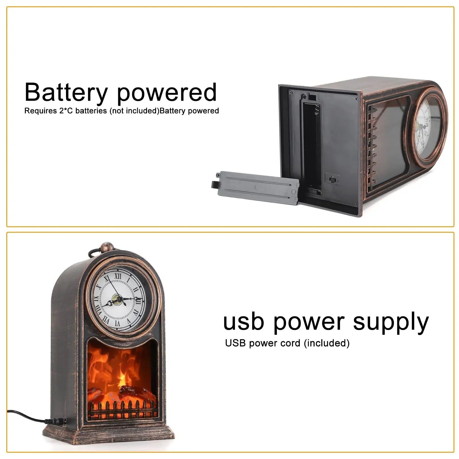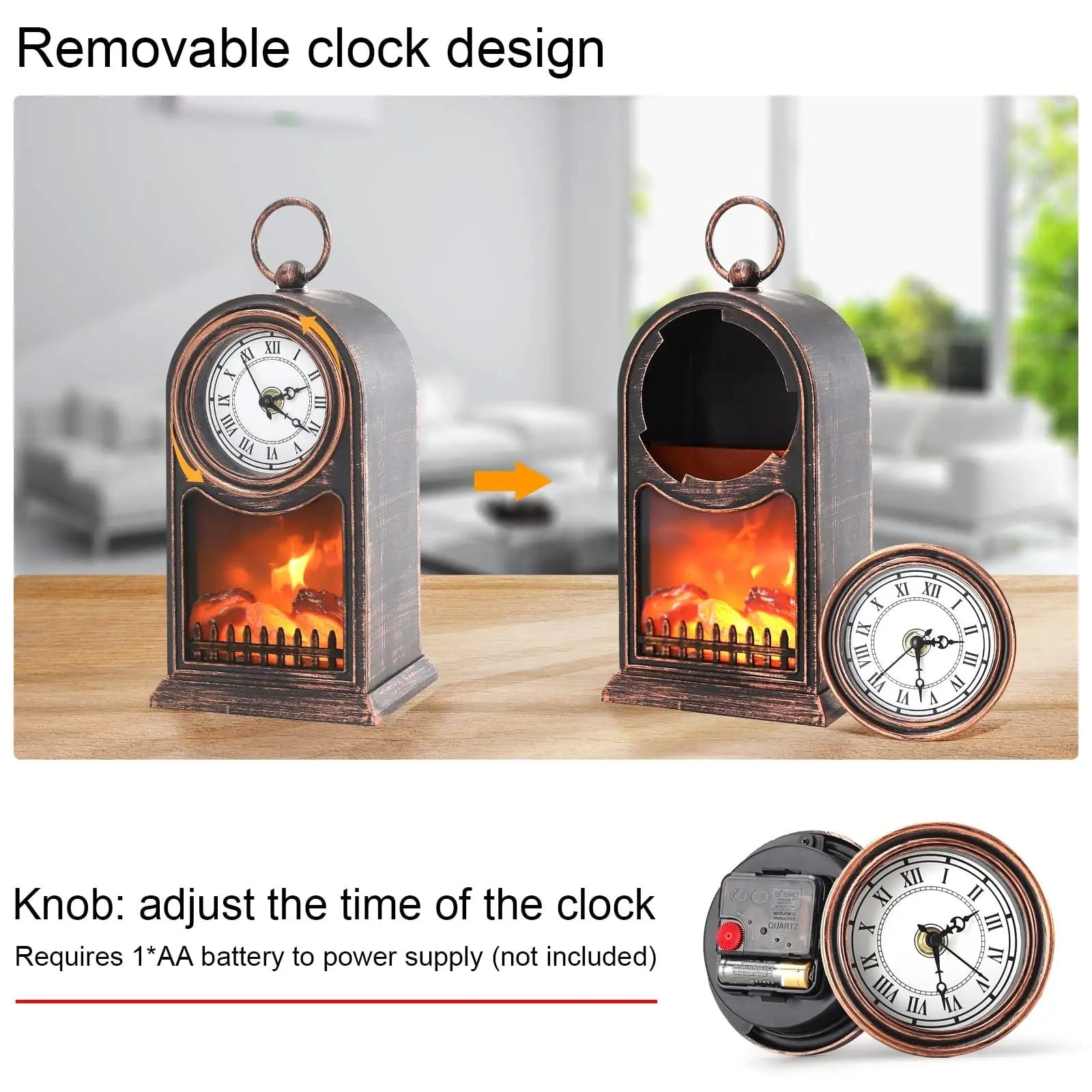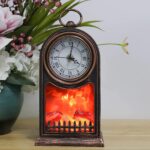 Veioza in Forma de Semineu cu Ceas, Plastic, Soclu E14, 40W, Model Retro, Culoare Lemn Vechi Maro