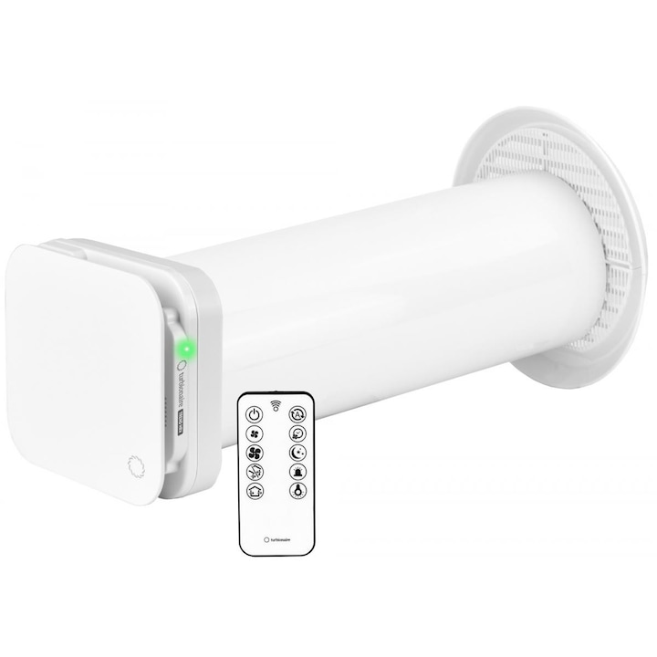 Ventilator cu recuperare de caldura Turbionaire Trend HRV, recuperator ceramic, senzor de umiditate, telecomanda, timer, 8 viteze, mod sleep, Motor DC Brushless, 100 mm, functie auto, flux de aer reversibil