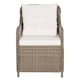 Masa de cina este realizata din lemn masiv de acacia cu finisaj de ulei, ceea ce o face stabila, durabila si usor de intretinut. Dispunand de un cadru din otel vopsit electrostatic, acoperit cu ratan PE rezistent la intemperii, scaunele de masa sunt robuste si usor de curatat. Pernele cu forma ergonomica, gros captusite, ofera un confort maxim. Husele din poliester cu intretinere redusa pot fi, de asemenea, indepartate si spalate.