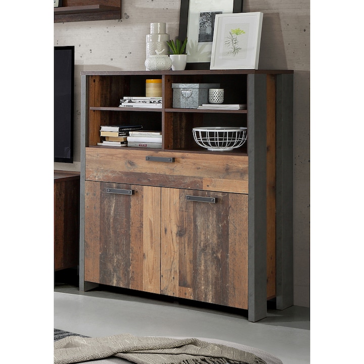 Vitrina joasa Kring Retro, culoare Vintage, 107x 130 x 41 cm, 2 usi 1 sertar