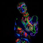 Vopseaua neon reactiva UV pentru tubul de vopsea pentru corp de 50 ml poate fi aplicata cu o perie fina sau mult mai usor cu degetele.
